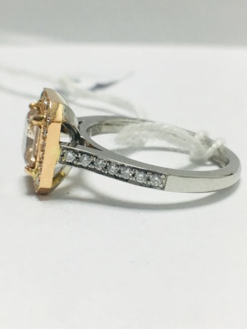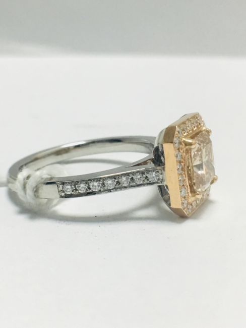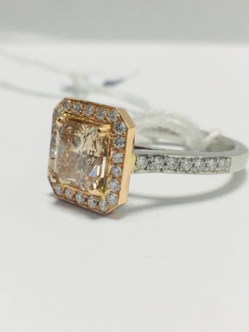 1.33ct fancy pink diamond radiant Cut,18ct diamond set handmade setting,Hrd Certification