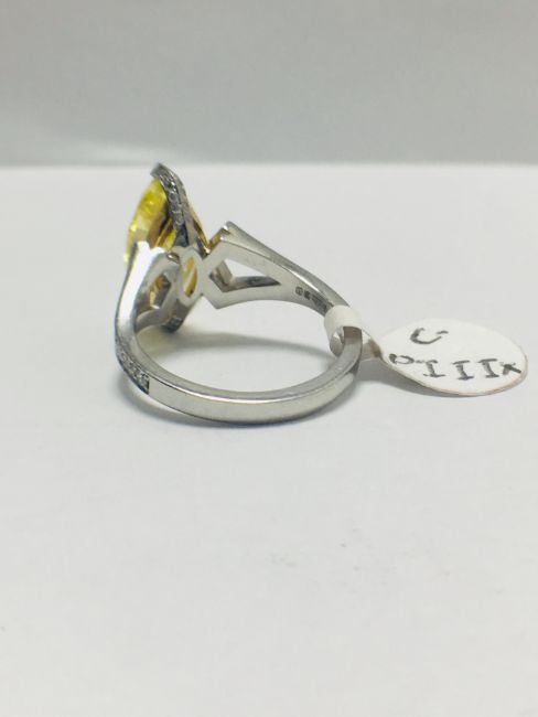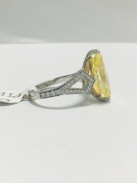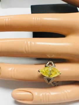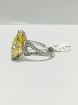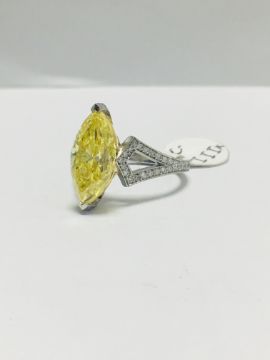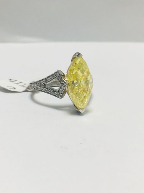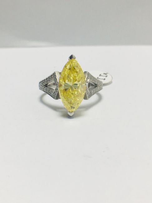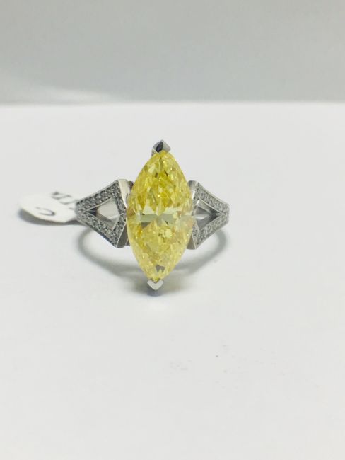 3.54ct fancy yellow marquis diamond ,GIA Certification ,treated,18ct White gold diamond set mount,handmade,uk London Assay Mark,uk size L