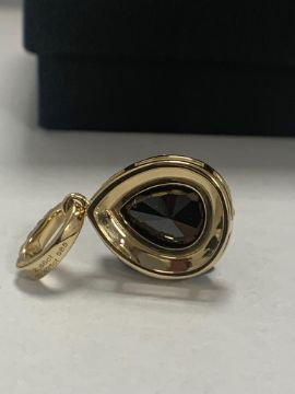 14ct Yellow Gold Diamond pendant featuring centre, pear cut, black Diamond (2.86ct), claw set, with 23 round brilliant cut Diamonds (0.49ct TDW), grain set in halo and bail.
