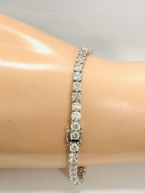14ct White Gold Diamond tennis bracelet featuring, 44 round brilliant cut Diamonds (10.12ct TDW), claw set.