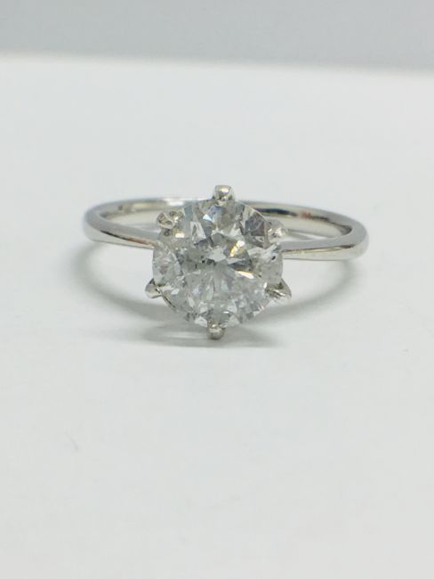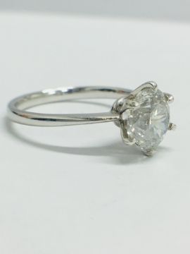 H colour and I1 clarity. High 4 claw setting, size M. Hallmarked 950,London 2018,.(diamond is clarity enhanced by laser to remove inclusion) Free re-sizing available. No certification but can be done , please ask.