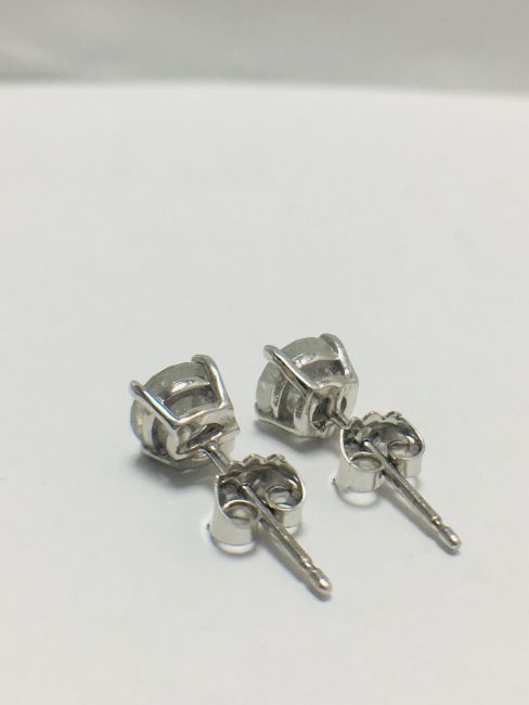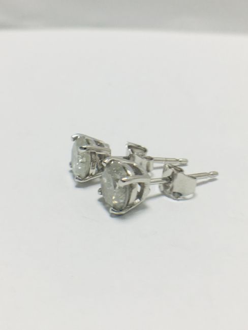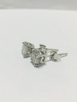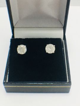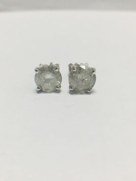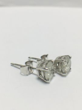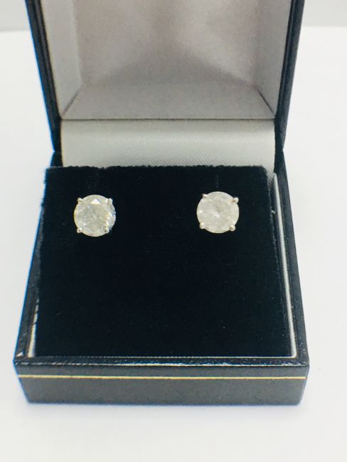 2ct (1ct each) diamond solitaire earrings,brilliant cut,i colour,i2 clarity,18ct White Gold 4 claw settings,uk manufacture,uk London Hallmark,diamonds are testy as clarity enhanced