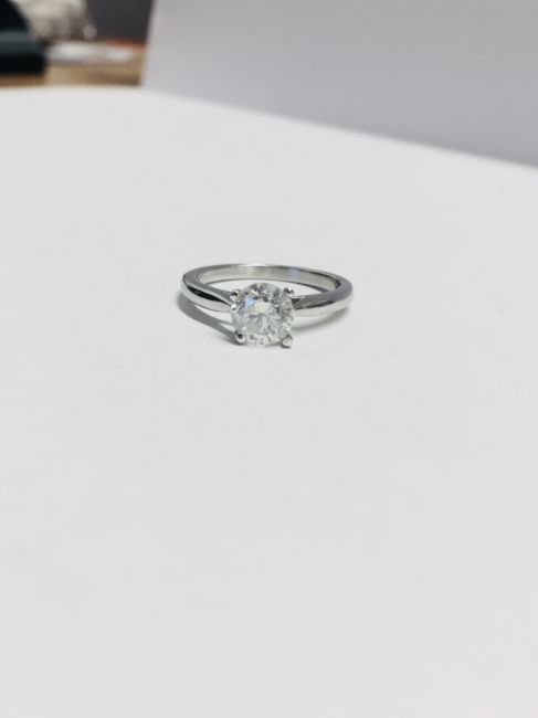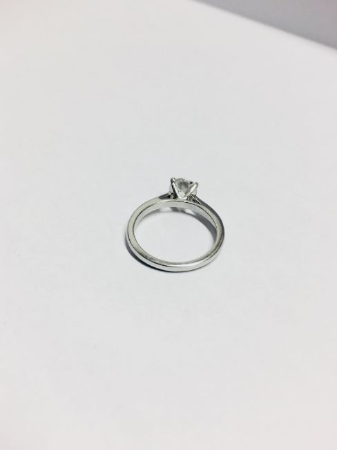 F colour and I1 clarity. Set in 18ct gold 4 claw setting, size M. hallmarked 750. Free re-sizing available. No certification but can be done for a £40 charge, please ask.