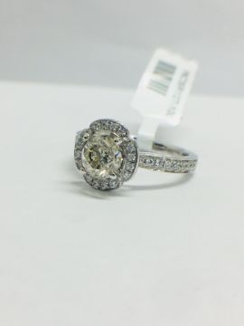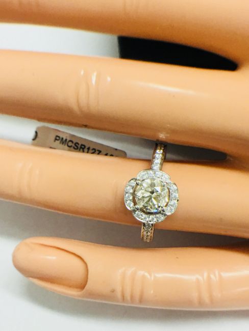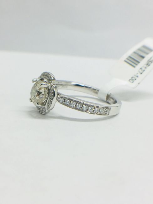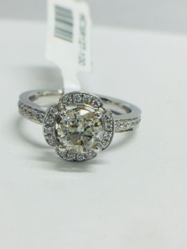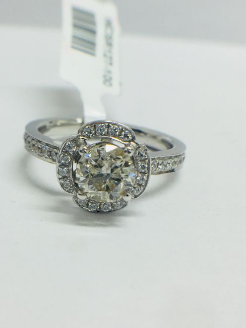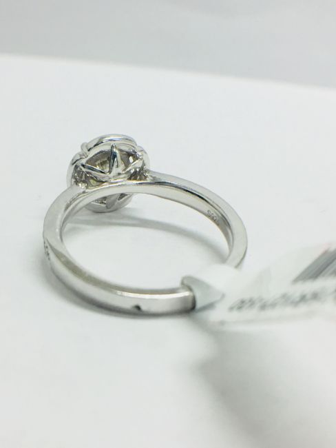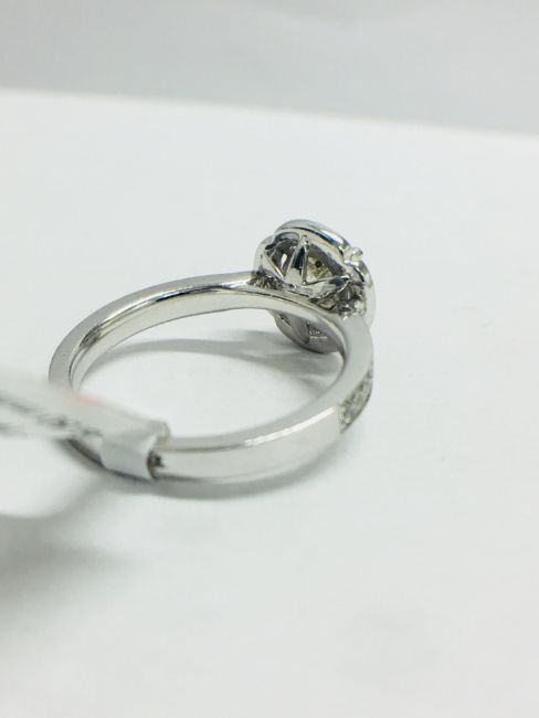 1.30ct total diamond weight,0.90ct centre diamond bRilliant cut,K colour,i1 clarity brilliant cut,0.30ct brilliant cut diamonds in the setting(34 stones),g colour,vs clarity,6.05gms platinum 950,london hallmark 2018.uk size L,condition new,no treatment to diamonds