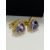 14ct Yellow Gold Tanzanite and Diamond stud earrings featuring, 2 trilliant cut, violet blue Tanzanites (2.02ct TSW), claw set, with 36 round brilliant cut Diamonds (0.36ct TDW), grain set.
