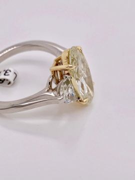 2.24ct oval light yellow natural diamond,si clarity,no treatment,0.71ct (0.35ct each) half moon cut diamonds sent her side,6.80gms platinum and 18ct yellow gold,handmade and set,uk size L,U.K. hallmark 2019,