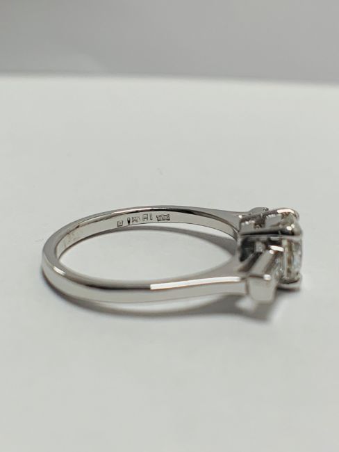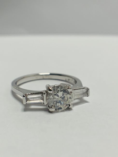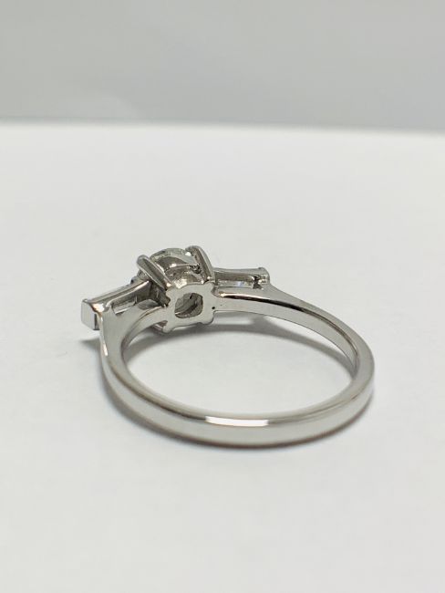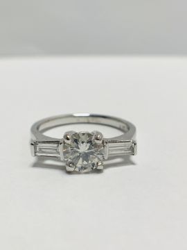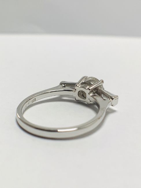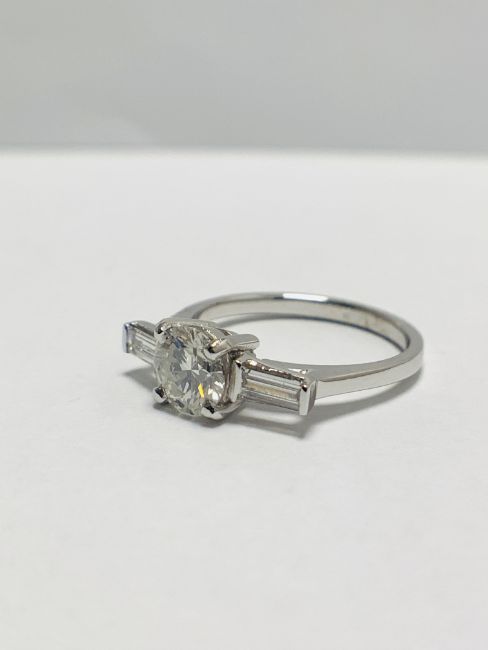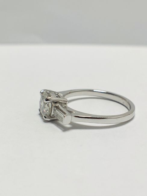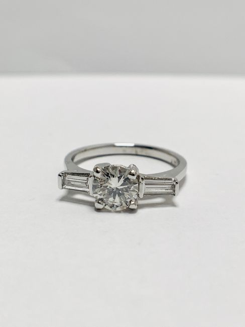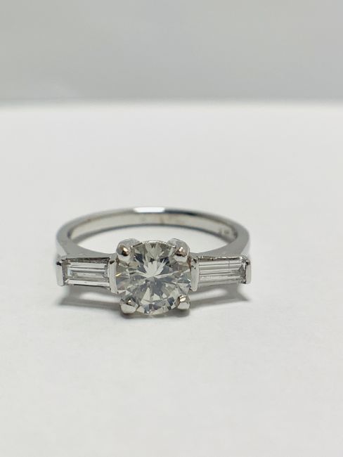 1ct Centre diamond,h colour,si2 clarity,natural,0.30ct in two bagette diamonds,vs clarity,h colour,handmade U.K.,18ct 750 hallamrk,U.K. size K,uk made,natural diamonds.