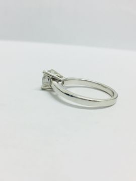 H colour and si3 clarity. Set in 18ct gold 4 claw setting, size M. hallmarked 750. Free re-sizing available. No certification but can be done , please ask.
