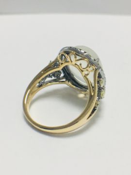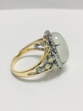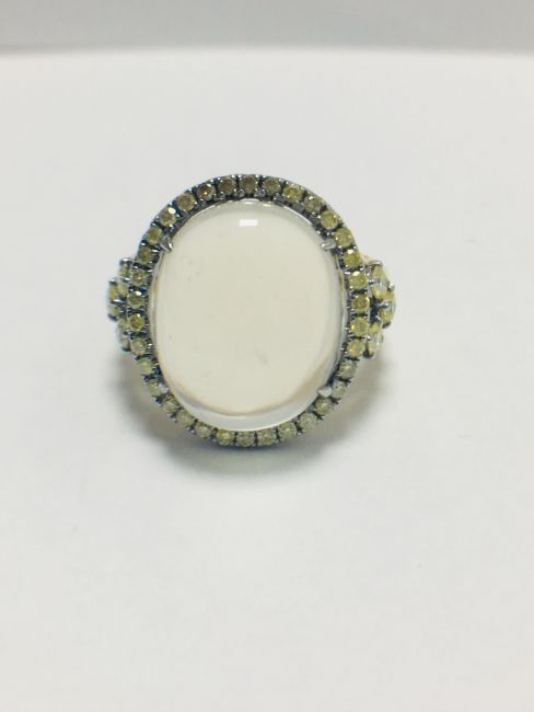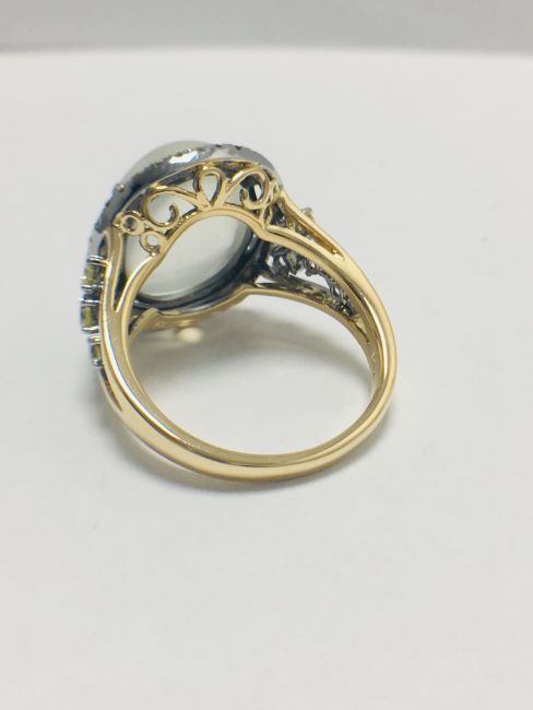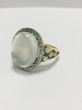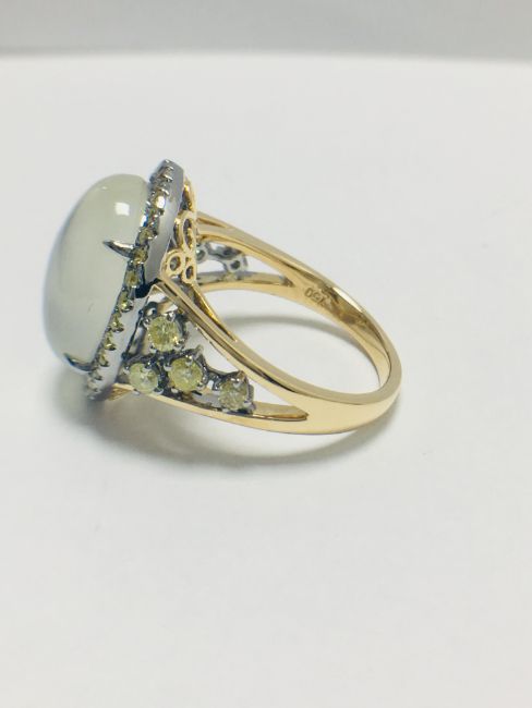 18ct rosegold moonstone and yellow diamond handmade ring,6.84gms 18ct rosegold ,0.50ct fancy yellow diamonds,U.K. size L