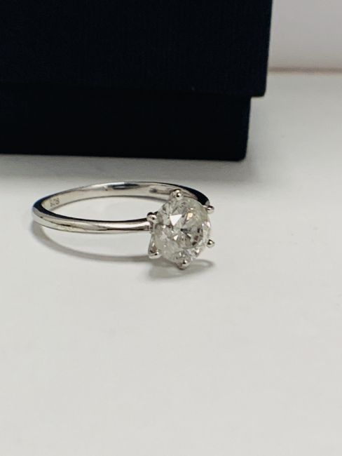 1.74ct brilliant cut diamond,G colour,i2 clarity,good cut and brilliance,platinum 6 claw ring setting,3.9gms,U.K. manufacturer and hallmark ,London 2019,U.K. size L,diamond is tested as natural no treatment,appraisal £7950