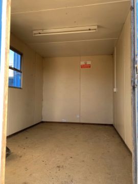 Steel Portable Office. 12ft x 7ft Fitted with lights, plug sockets, heater.