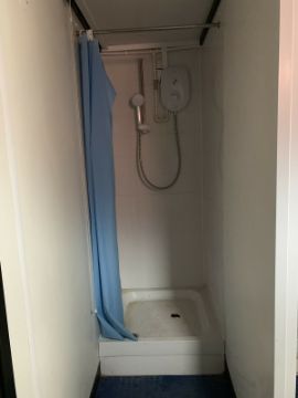 Anti Vandal Steel Portable Shower Block Drying Room With Toilet. 32ft x 10ft on jack legs. Wind and water tight. Fitted with lights, heaters, 3 Showers, 1 Toilet, sink and hot water boiler.