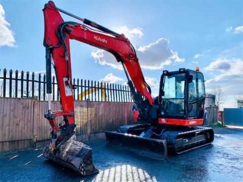 Kubota KX080-4 Excavator 2015. Hydro Hitch & 3 Buckets. Air Con. Double Hammer Lines. CE Marked