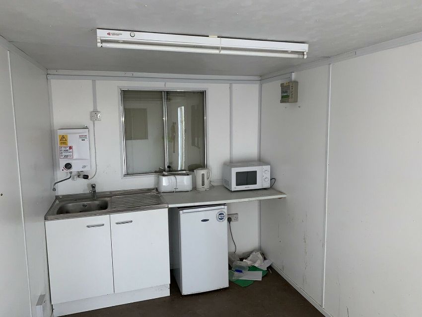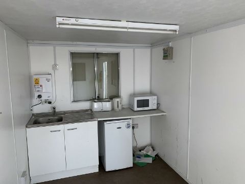 Anti Vandal Steel Portable Office. 20 x 8ft. Fitted with lights, plug sockets, heater.