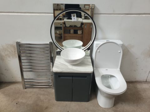 Bathroom Set - Cupboard with Bowl, Toilet, Radiator and Mirror