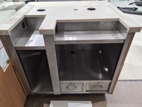 Meva Serving Counter. Used for weighing produce. Approx 3.9ft wide, 2.10ft depth, 3ft height