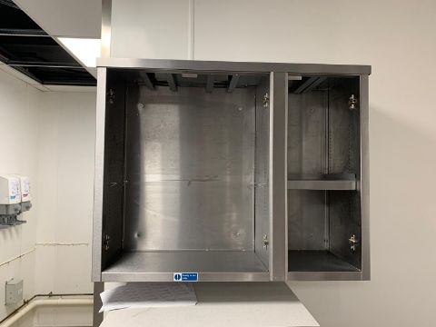Stainless Steel cabinet, no doors approx 2.5ft by 3ft