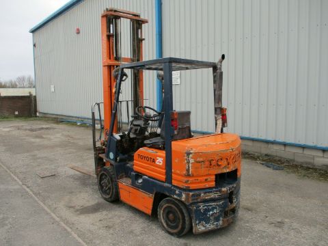 Toyota 5FDC25 Forklift 2.5 ton lift. Toyota diesel engine. Sideshift. About 4.5 metres lift height. In daily use. Weighs about 4000 kg