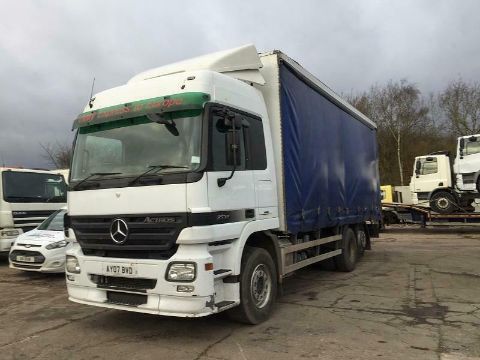 Mercedes Actros 2532 2007 white/blue MOT: August 2020 7.4M Curtainsider body fitted with barn rear doors, auto 6 x 2, good condition, sleeper cab, air suspension 25 tonner