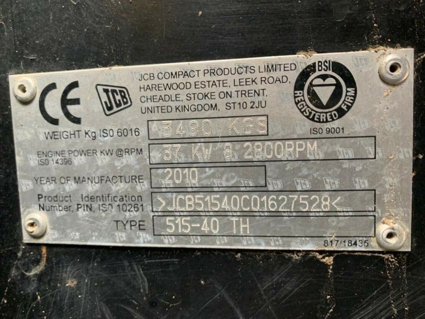JCB 515-40 Telehandler 2010 1500 kg Lift, 4 M Reach, Towing Eye, Road Registered. Piped, Pallet Forks, CE Marked