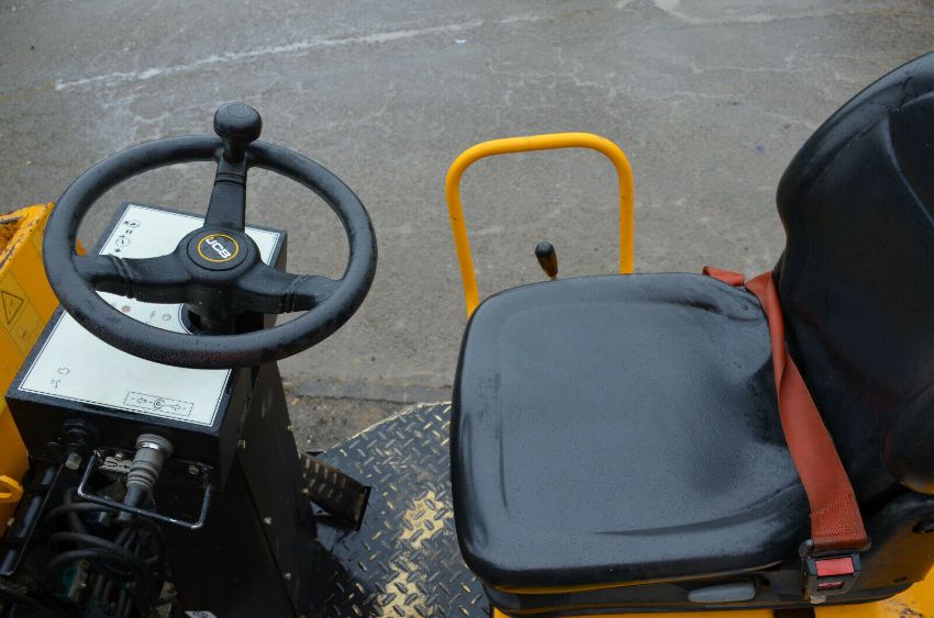 JCB 1THT High Tip Dumper 2017 4x4. 3 cyl Kubota diesel engine 15.5 kW. Hydrostatic transmission, max payload 1000 kg. Max speed 11 km/h. Unloading height 1620 mm. Dimensios (LxHxW)mm: 2980 x 2832 x 1120. Folding rollbar, good tyres, weight 1415 kg