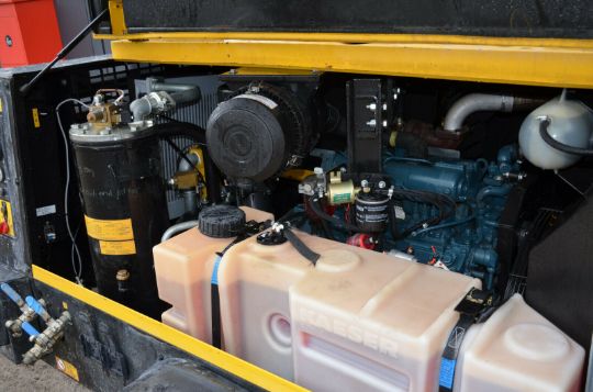 Kaeser M64 Compressor 2016. 4 cyl Kubota diesel engine 43.3 kW. Working pressure bar 7. Air flow 6.4 m3/min (225 cfm) 3 tools. Weight 1236 kg