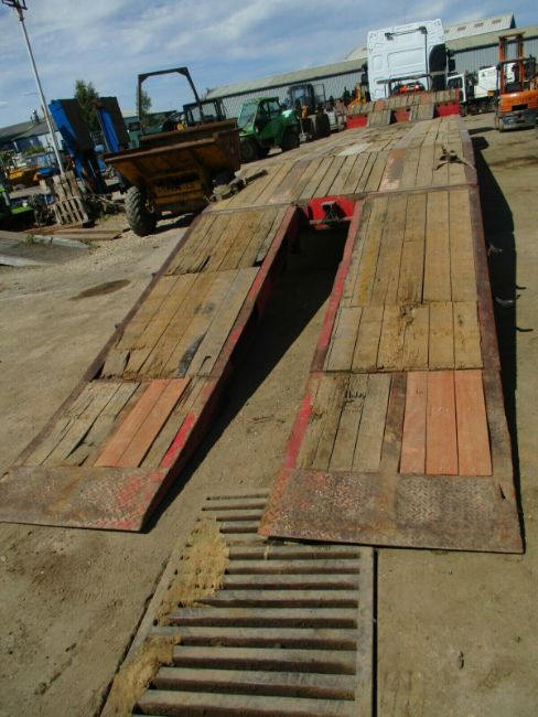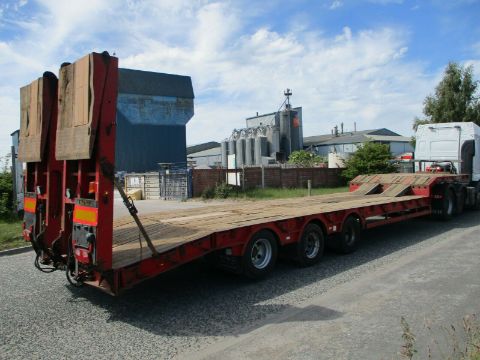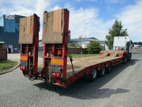 King GTS44 Low Loader Trailer 2008, air suspension. Raise / lower. Rear lift axle. MOT TILL June 2020. New winchVery good 17.5" tyres 1 New Outriggers. 13.6 metres long 38000kg gross weight neck ramps in use and 6 weeklys, Electro hydraulic fliptoe rear ramps with side-shift