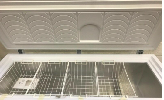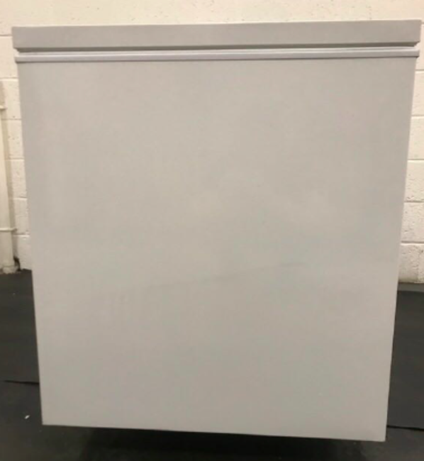 Equipped with lift up stainless lid, handle and lock, defrost water drain complete with 4 wire baskets. Interior & Data Plate: 4x baskets, 1x set of keys, good condition/as new.Front & Top: Large paint scratch to bottom of unit. Bottom right hand corner dented.Right hand side: Large dent to front bottom corner of unit.Rear & Top: Small scratch in film to lid. Plug and cable present.Left hand side: Good condition, slight dent to bottom front.