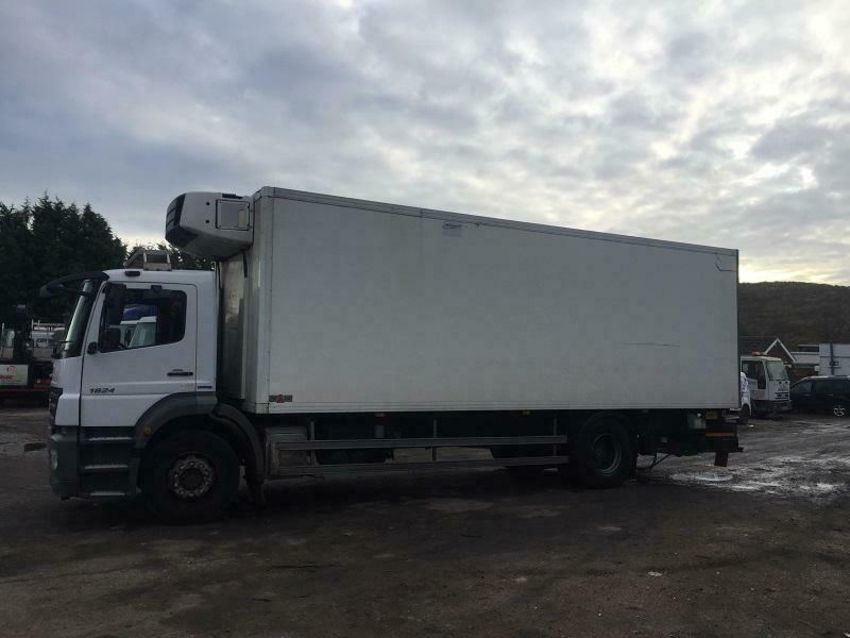 Mercedes 1824 2009 White 8.2M Carrier Supra 850 silent fridge with tuck away tail lift. Manual gearbox 4x2 good condition, day cab, air suspension