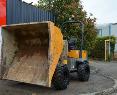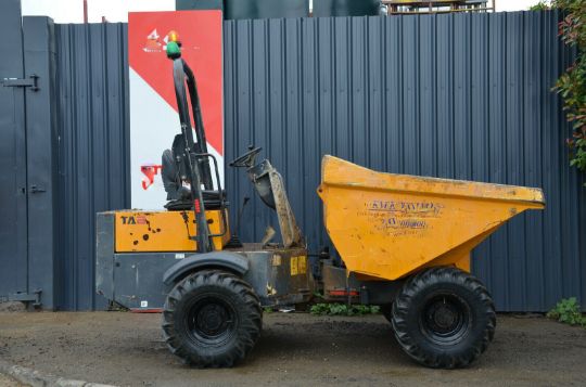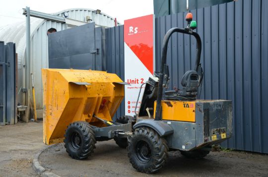 Terex TA3 Dumper 2016 4x4 Straight tip 4 cyl Kubota diesel engine 32.4 kW. Manual gearbox, payload 3000 kg. Dimensions (LxHxW)mm: 3700 x 2660 x 1950. Folding rollbar, towing bracket, good tyres, weight 2280 kg