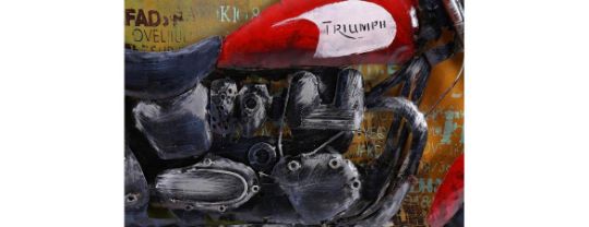 3D Metal Red Triumph Motorbike Painting. Dimensions: 80 x 120cm. Material: Metal. Delivery: Delivery available at additional cost to buyer.