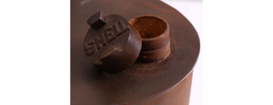 Shell Oval Oil Can. Dimensions: H35 x W27.5 x D21cm. Material: Metal. Delivery: Delivery available at additional cost to buyer.