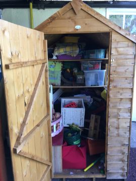 Apex roof garden shed with single door and window and chalkboard fitted to one side with contents, 1800x1200mm as lotted