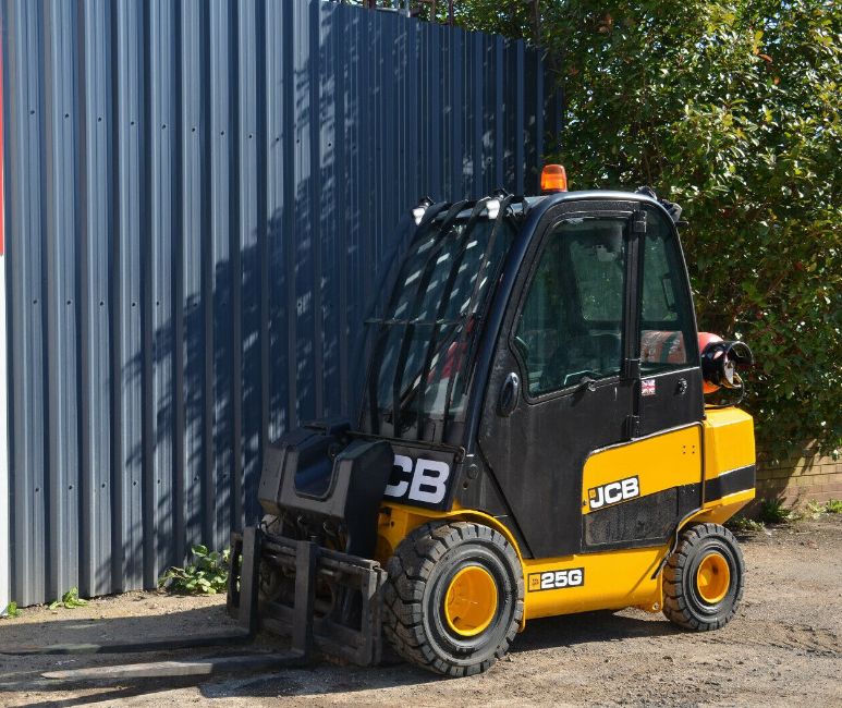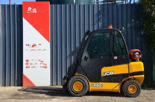 JCB Teletruk TLT25G 2015 2WD. Full cab 4 cyl LPG Engine 43 kW. SIde shift, forks, max lift height: 4,0 m. Max payload 2500 kg Height, width, length 2.19m/1.20m/2.63m. Good tyres, weight 4400 kg. Transport can be arranged at extra cost and international delivery is available