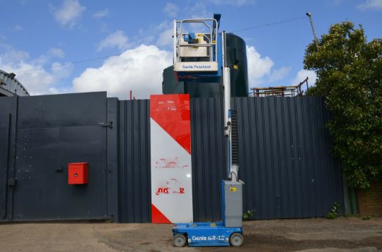 Genie GR-12 Aerial Work Platform 2014. Electric, working height 5.28 m. Platform height 3.45 m. Platform capacity 227 kg. PLatform dimension (m): 0.75 x 0.89 (1.40). Dimensions L/W/H m: 1.35 x 0.75 x 1.57, good tyres, weight 743 kg. Transport can be arranged at extra cost and international delivery is available