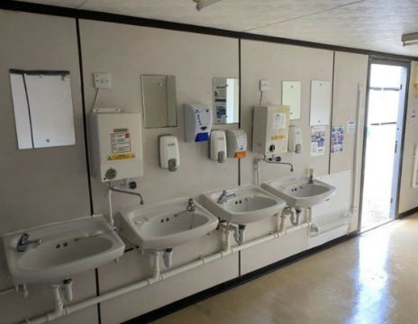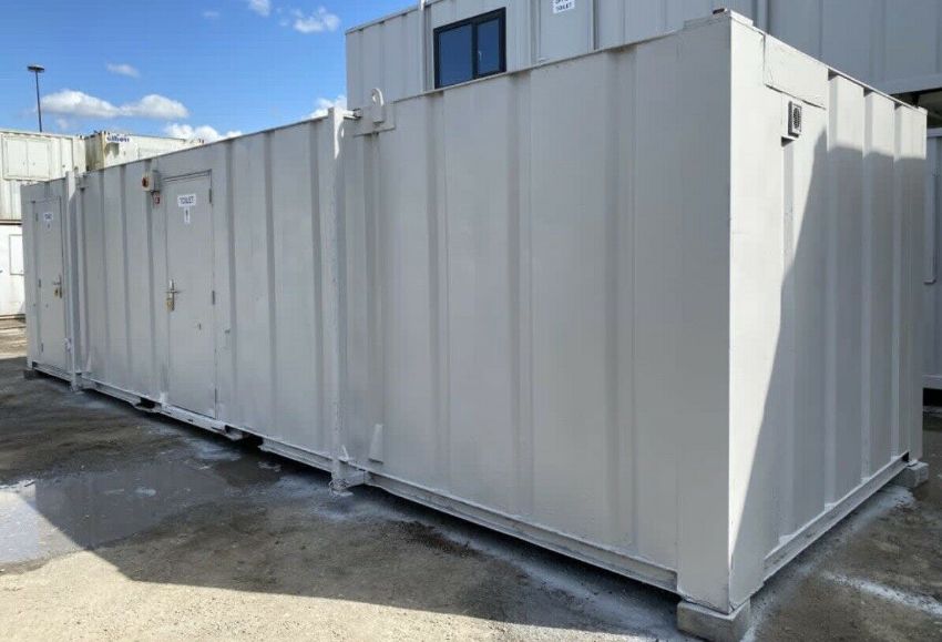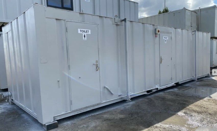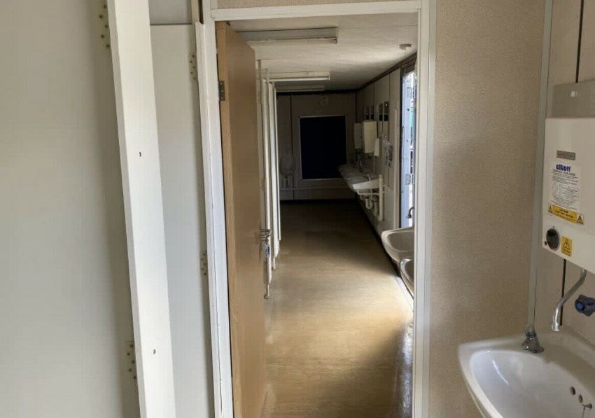 32ft X 10ft 5 + 3 Male And Female Toilet Block, Wc, Welfare Unit, Site Cabin. 5 male cubicles + 6 urinals. 3 female cubicles. Has lockable Inter-joining door to make unit open plan or can lock and use as separate sides. Nationwide delivery available