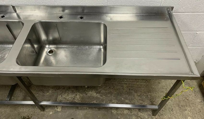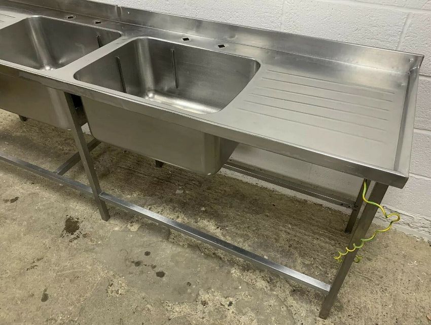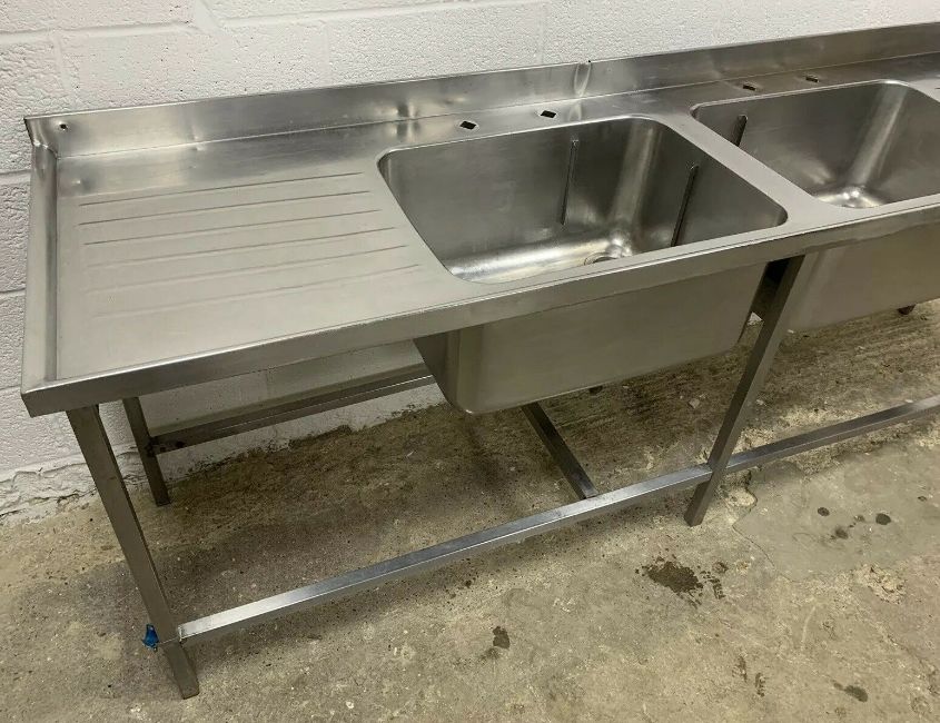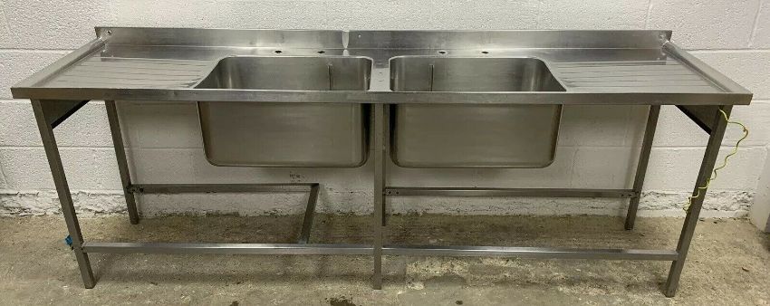 Stainless Steel Double Bowl Sink with Double Drainer, Width 2405 MM, Depth 650 MM, Height 860 MM, Bowl Dimensions Width 610 MM, Depth 445 MM, Height 300 MM