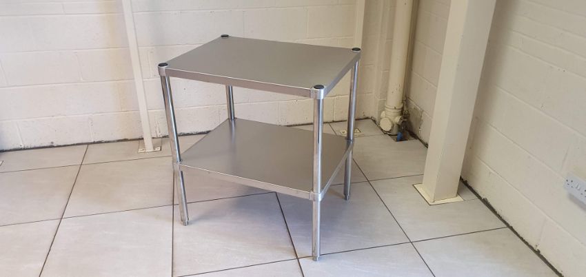 Size in millimetres: 800 mm long x 610 mm deep x 1050 mm high 2 x stainless steel adjustable shelves Stainless steel round easy clean legs Adjustable metal feet Images