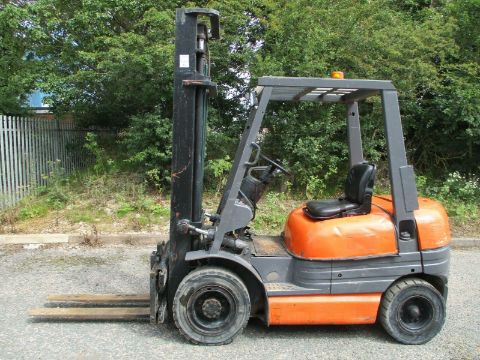 Toyota 6FD25 Forklift. 2.5 ton lift. Toyota diesel engine. Sideshift. In daily use. Weighs about 4000 kg