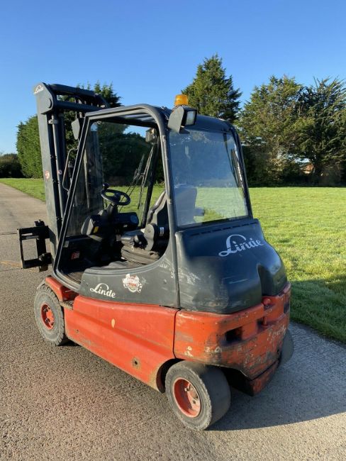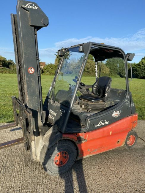 Linde Forklift Truck. 2.5 tonne lift. Very Low hours. Very well looked after truck by Linde. 5.3 meter triple mast with side shift. Good battery complete with charger