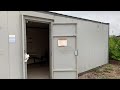 Anti Vandal Steel Portable Office Canteen 32ft x 10ft. Wind and water tight. Fitted with lights, plug sockets, heaters.