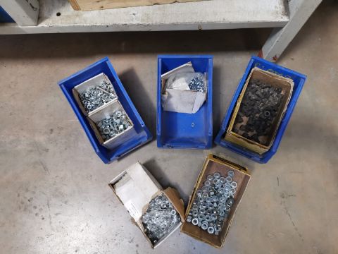 A Variety of Different Size Nuts and 3x Blue Containers