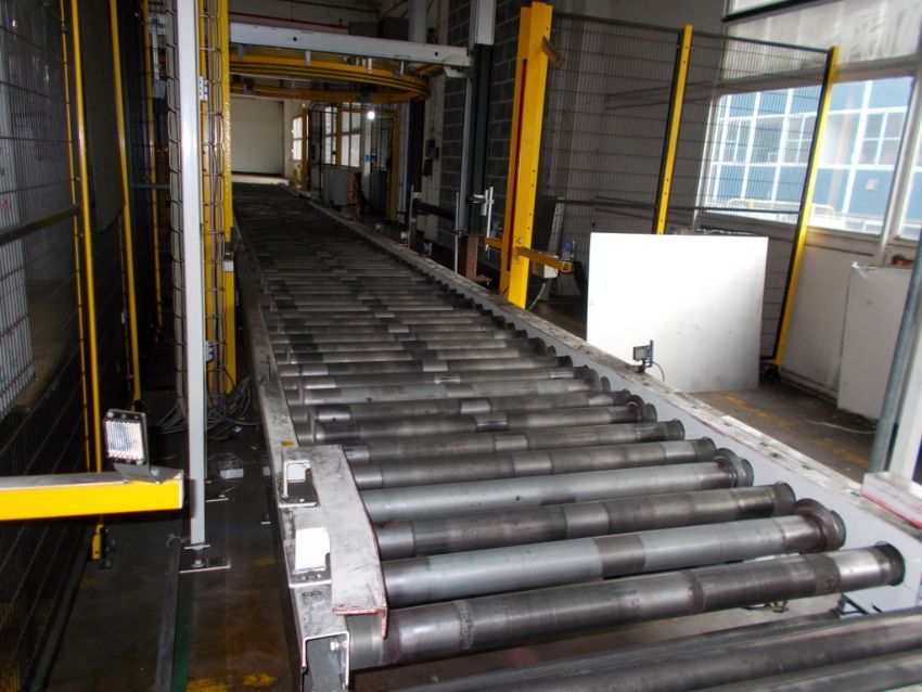 Serial no. 420455-001 (2012)with 4 x BHL Conveyors motorised infeed chain conveyors with motorised roller conveyor (3100cm x 100cm approx.)with safety fencing surround