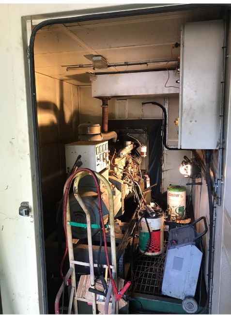 Up and working, producing electric in full acoustic shipping container with its own large diesel compartment,