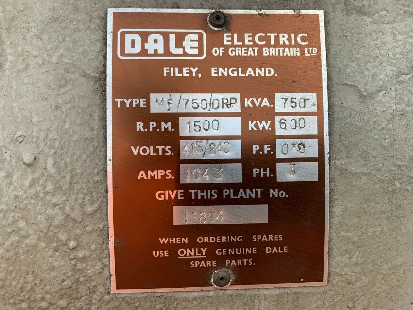 750 KVA Dale Generator PAXMAN V12 Engine.