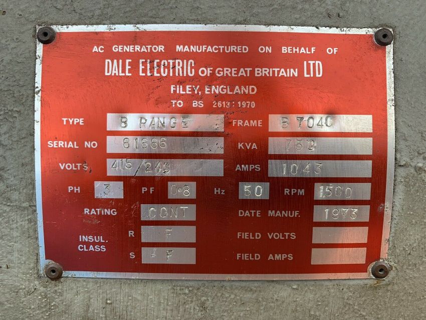 Generator PAXMAN V12 Engine 750 KVA DALE hours low as used as a standby generator. Professionally removed from the building. Serviced 1 year ago when the factory shut down.