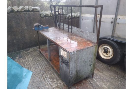 Built in small tool cabinet with door. 6ft long, 27inches wide, 33inches deep and 5ft 1inch to the top of tool frame.