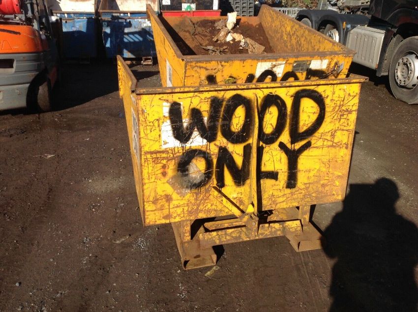 Forklift tipping skips, with handle for tipping ideal for standard counter balance forklift or telehandler