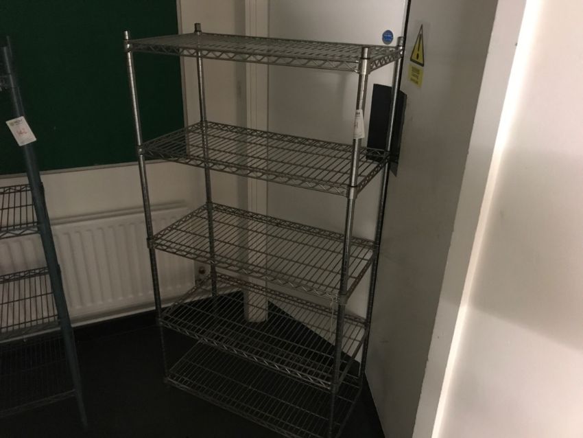 Chrome wire mesh racking approximately 1 m wide by 500 mm deep by 1.7 m tall