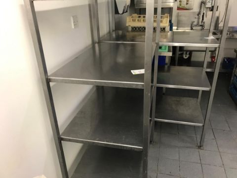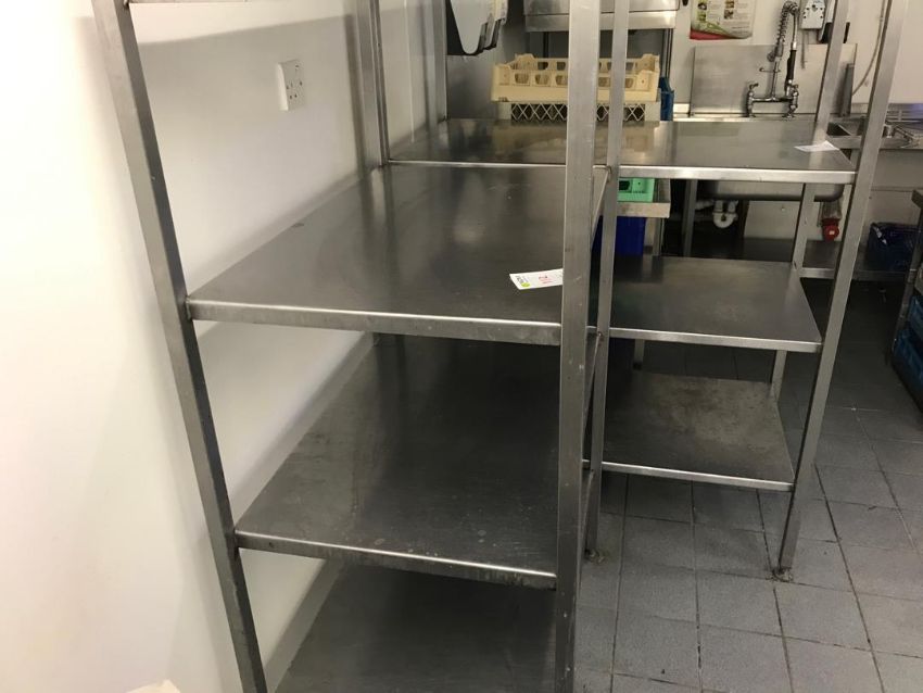 Stainless steel shelf approximately 1.7 m tall by 1 m wide 600 mm deep